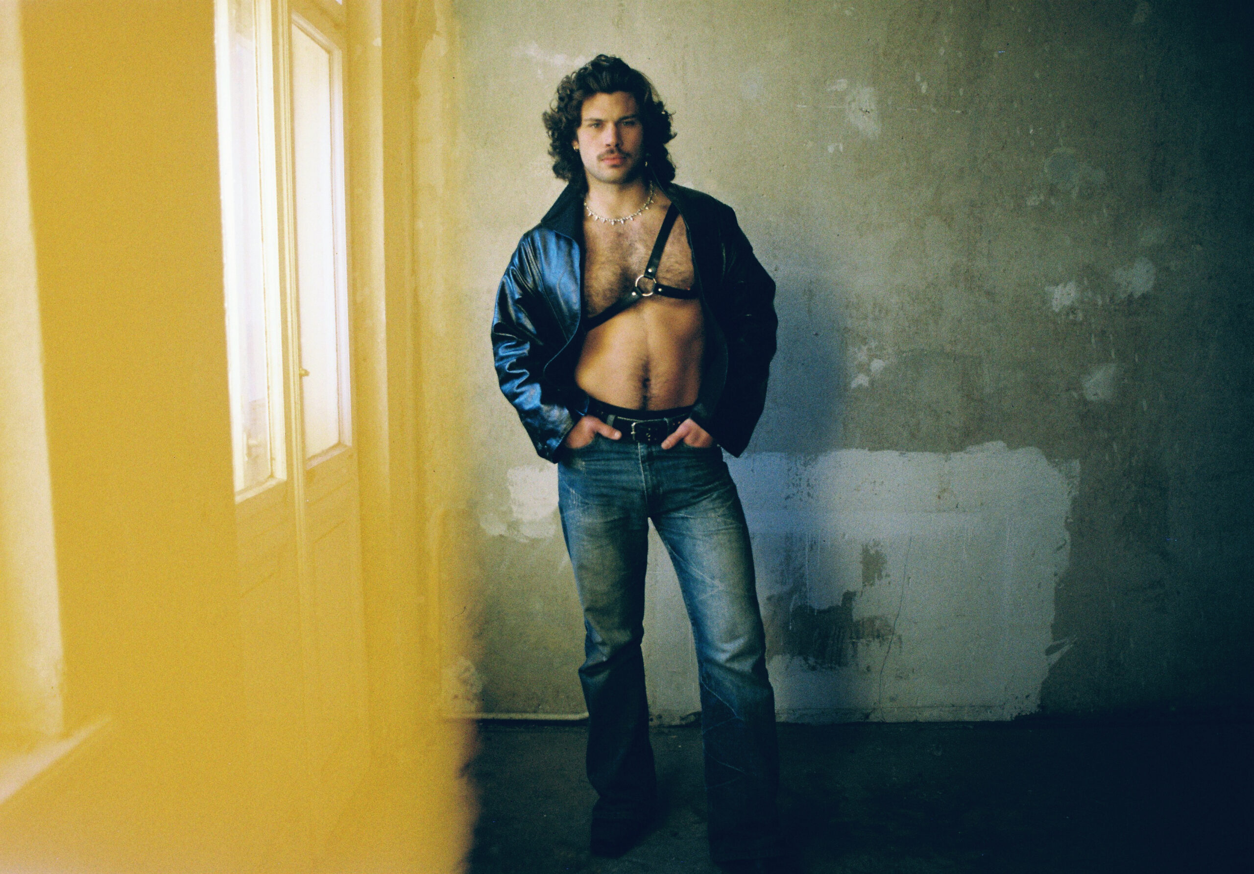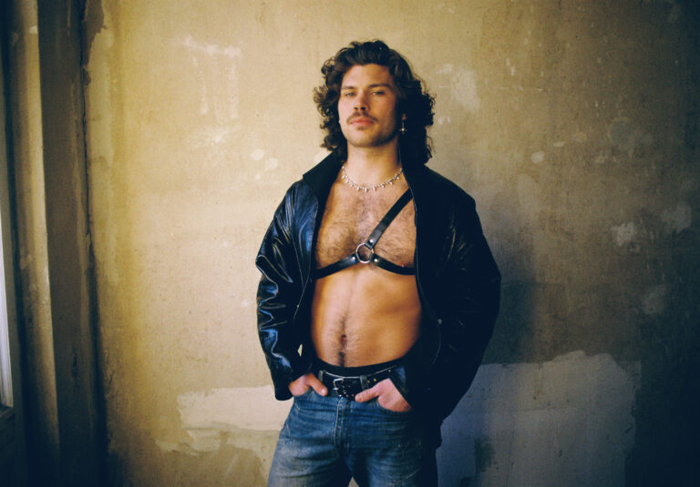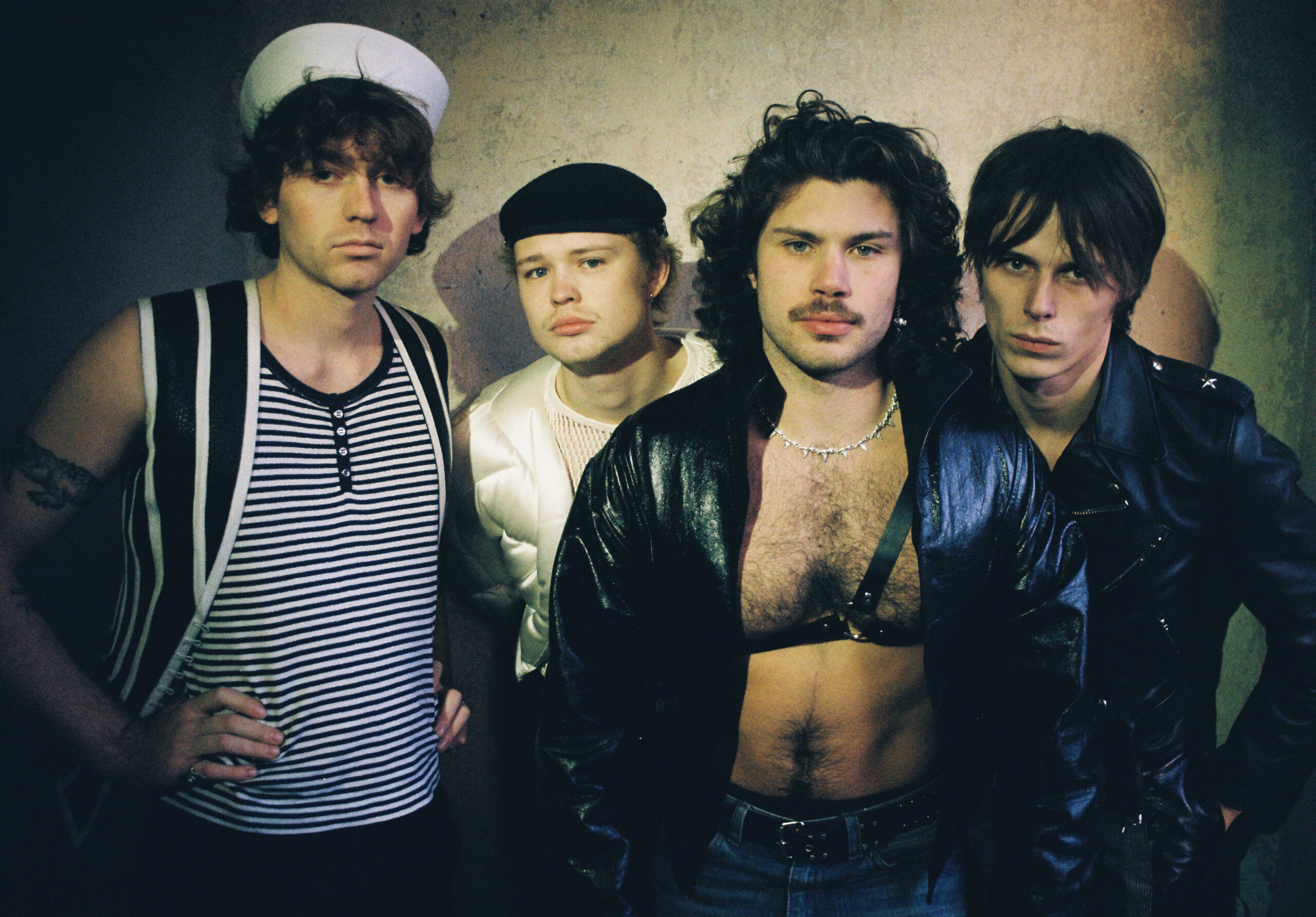 That was less than a year ago. Now, I am at a rehearsal with the boys, post successfully haranguing them into a Tom of Finland-inspired photoshoot styled with Gio Levan clothes, designed by my long-time best friend. The band is still newborn, having started after Martin (drums) borrowed a lighter from Max (guitar and vocals). Jona (bass and vocals) would join soon thereafter, with Michael (guitar) being the newest addition. All but Max are from Norway, and all but Michael met at a university they would later drop out of. There’s a bit of bickering as to how exactly to tell the story, but ultimately after a lighter was borrowed, Jona says “I arrived to the cafe, and I saw the two of you, and you had already decided to start a band.” Easy enough.
