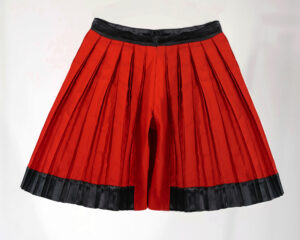 Rooted in the mischievous energy of the Kintos of 19th-century Tbilisi, the Kinto Shorts reinterpret cultural wit through a sculptural lens. Double box pleats billow with movement, supported by tulle underlayers reminiscent of a ballet tutu, while black satin trim carves a sleek outline. Both playful and commanding, they blur costume and couture.